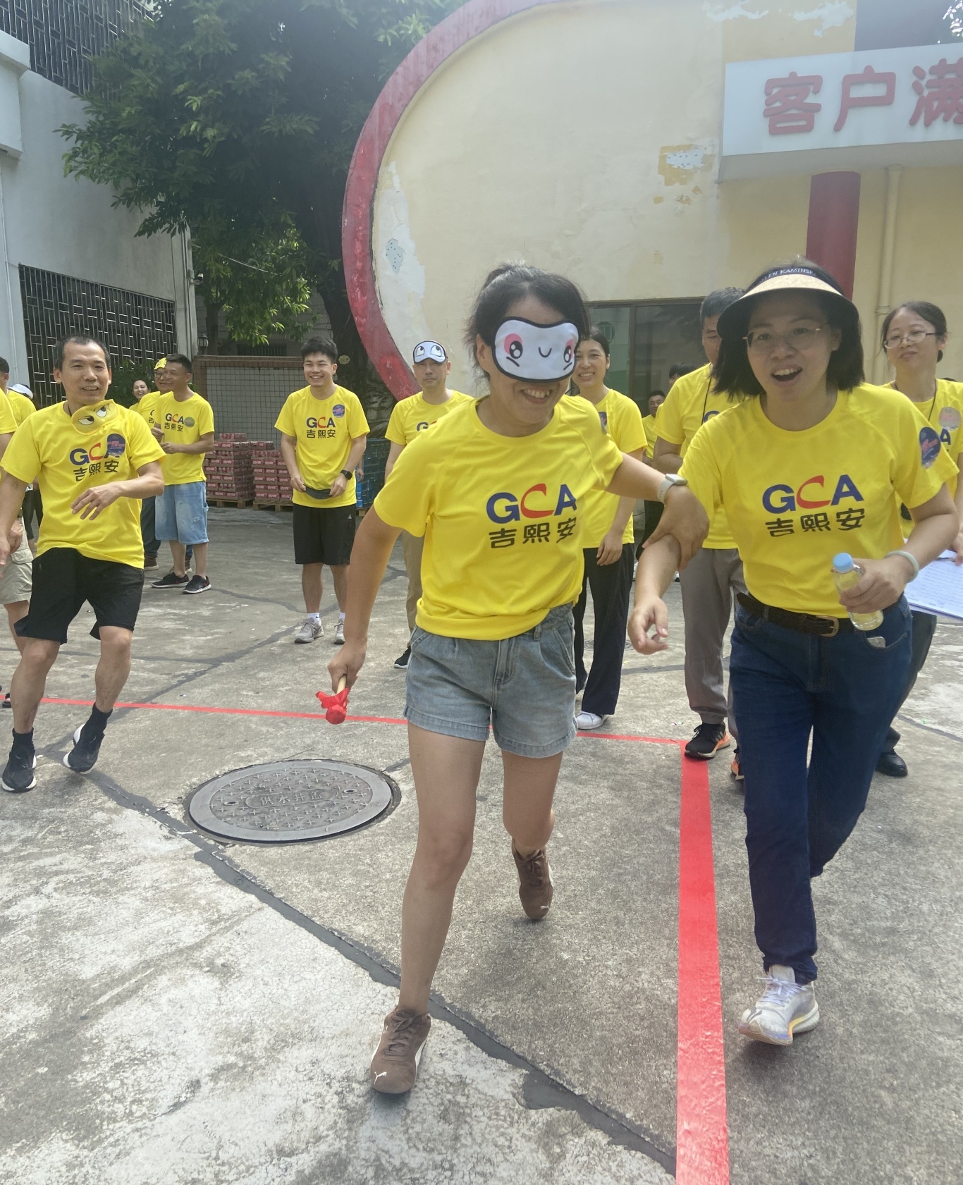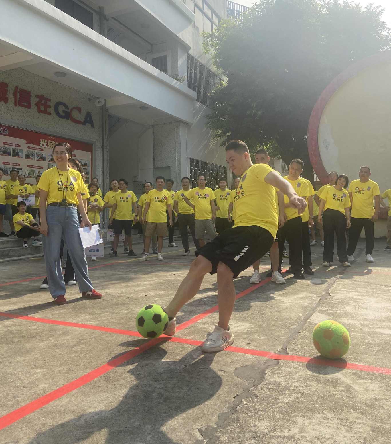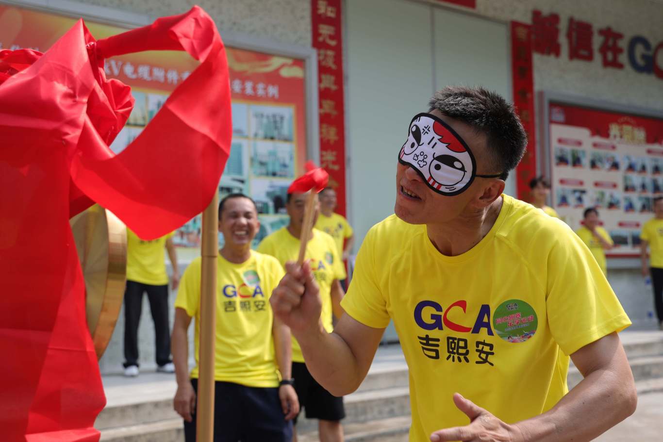 大家身着统一黄色T恤集合。活动开始,一场轻松有趣的集体暖身小游戏瞬间点燃了全场气氛,员工们在欢声笑语中活动筋骨,为后续做好准备。